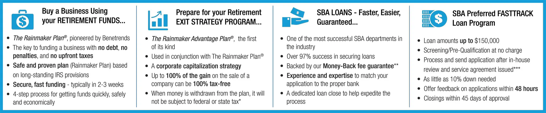 Benetrends Financial and Tenet Financial have helped entrepreneurs successfully launch their dreams for over 30 years, with proven and innovative funding strategies that maximize opportunities, while minimizing risk.
